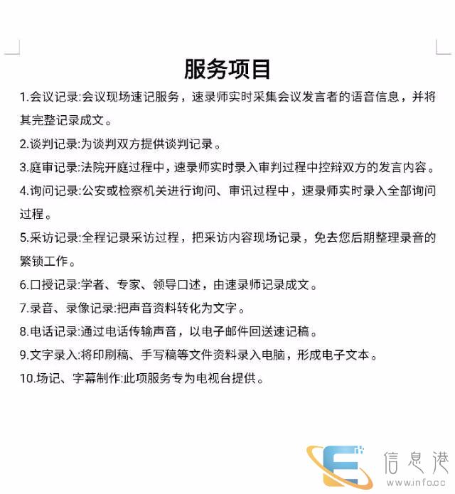速录是由具备相当的信息辨别、采集和记忆能力及语言文字理解、组织、应用等能力的人员运用速录机对语音或文本信息进行实时采集,整理的工作。由于工作环境,工作内容,工作要求的巨大差异,速录完全不同于打字。洛阳墨瞳速录工作室采用专业的设备快速录入,大大节省您宝贵的时间,提高工作效率。我们参与过几百场大型会议、节目录制,有丰富的现场经验。让客户满意是我们的服务宗旨,也是我们一直以来努力的目标。我们将恪守这一宗旨,竭诚为您提供优质满意的服务!我们提供包括现场会议速录速记,大型论坛速录速记,座谈会速录速记,新闻采访稿速录速记,录音录像整理,影视字幕场记整理,口述整理,大量文字作品录入等各类速录/速记服务。作为洛阳本地的专业化速记服务工作室,我们长期与洛阳市政府部门合作,具有大量现场会议经验,善听河南本地方言。